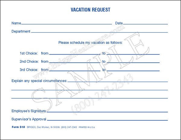 To aid in scheduling an employee can fill in his first, second and third choices for vacation on Briggs Form 518.